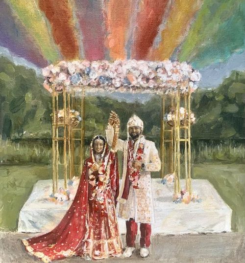 Als live wedding painter leg ik de mooiste momenten van jullie bruiloft vast op het doek. Ik schilder de ceremonie, het feest of een ander hoogtepunt van de dag, zodat jullie een blijvende herinnering hebben aan jullie speciale dag en favoriete moment. In tegenstelling tot een foto kunnen er details toegevoegd worden die jullie er graag bij zou willen. Zoals een dierbare die er niet bij kan zijn. Als je op zoek bent naar een uniek en blijvend aandenken voor jezelf of voor een vriend of familielid is een live schilderij het zeker het waard.